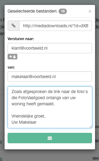 Met de functie "Delen" versturen wij een e-mail naar elk gewenst adres met daarin een Download link.