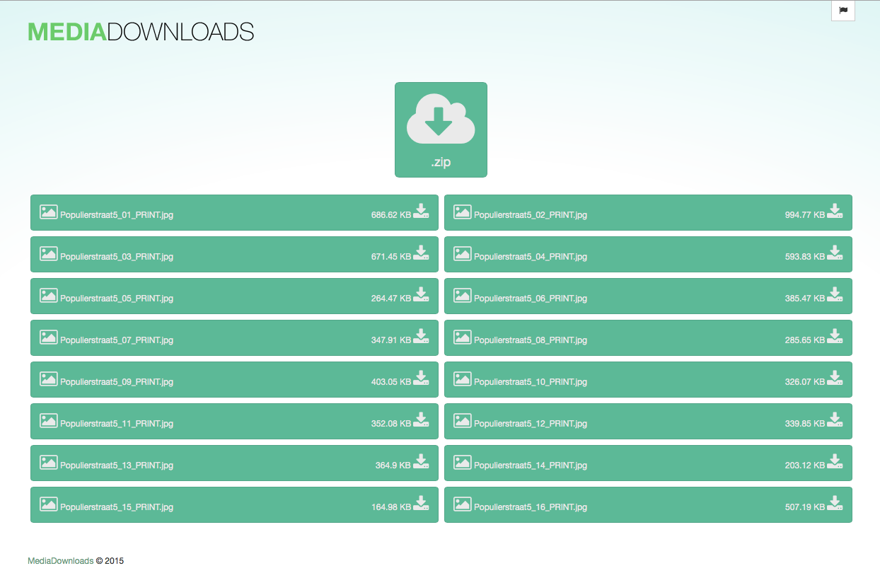 Zoals te zien kan de ontvanger de bestanden stuk voor stuk, of in een ZIP alle bestanden downloaden.