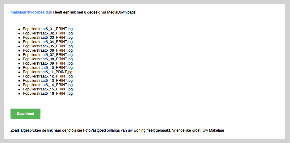 De ontvanger heeft dan 48 uur om de bestanden te downloaden vanaf MediaDownloads.nl