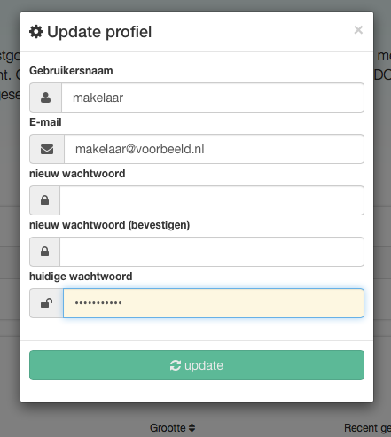 Uw Gebruikersnaam staat altijd rechtsboven op de pagina. Klik erop om uw profielgegevens te wijzigen.