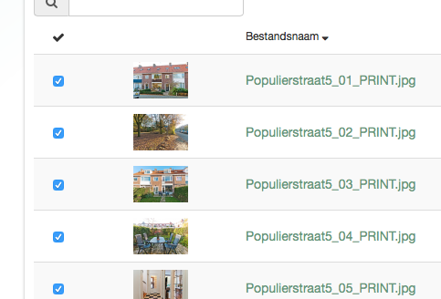 Natuurlijk hoeven niet altijd alle bestanden gedownload te worden. Een foto kan bijvoorbeeld gewijzigd zijn, of er zijn foto's toegevoegd. Door de blauwe vinkjes aan de linkerkant aan of uit te zetten, kunnen bestanden worden toegevoegd of juist weggelaten. Met het kleine zwarte vinkje bovenaan kunnen alle vinkjes worden aan- en uitgezet.